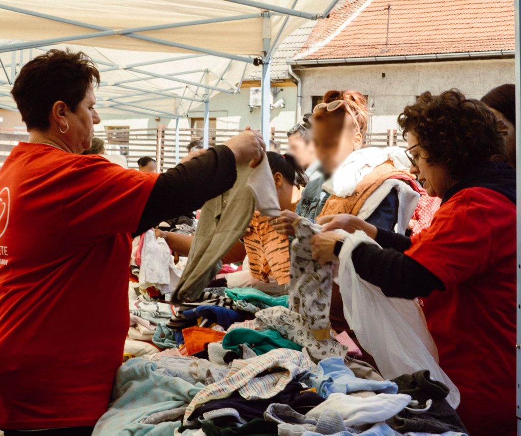 A kiosztott 35 csomag, és a több mint 300 kg ruha-, cipőadomány együttes értéke közel egymillió forint. Fotó: Gyöngyösi Hit Gyülekezete