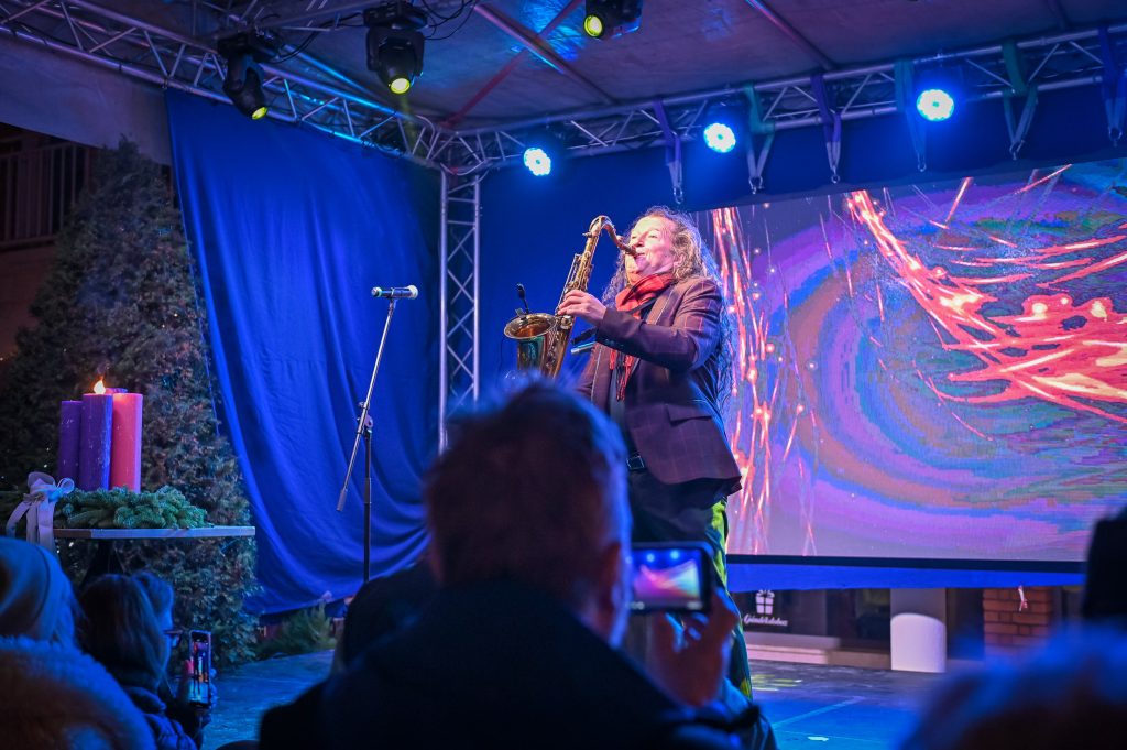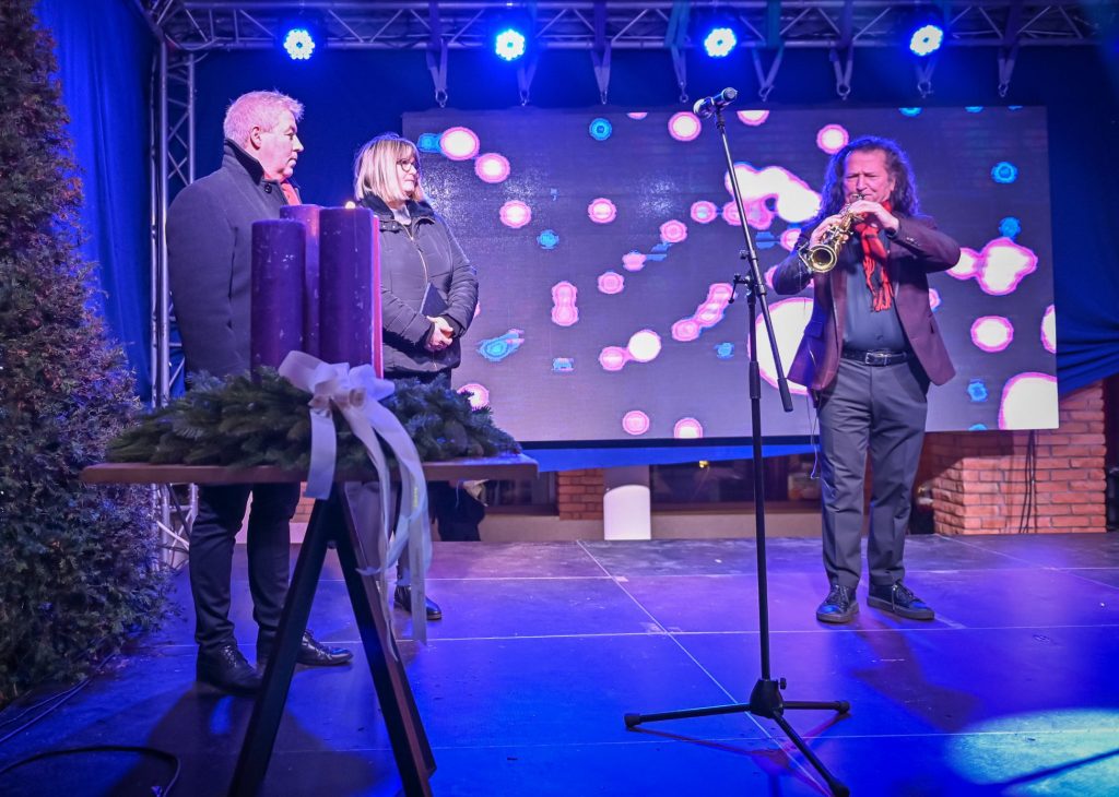 A meghitt gondolatok után Szókovács Péter polgármesterrel együtt gyújtották meg advent második gyertyáját, St. Martin szaxofon művész kíséretében.