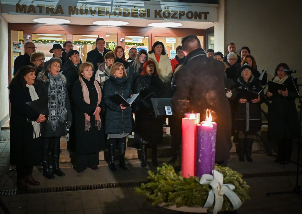 A meghitt hangulatról a Cantus Corvinus Vegyeskar gondoskodott Nagy Gábor vezényletével. Az ünnepi gondolatokat Mihályi Mátyás káplán osztotta meg, majd Szókovács Péter polgármesterrel együtt meggyújtották az adventi koszorú negyedik gyertyáját.