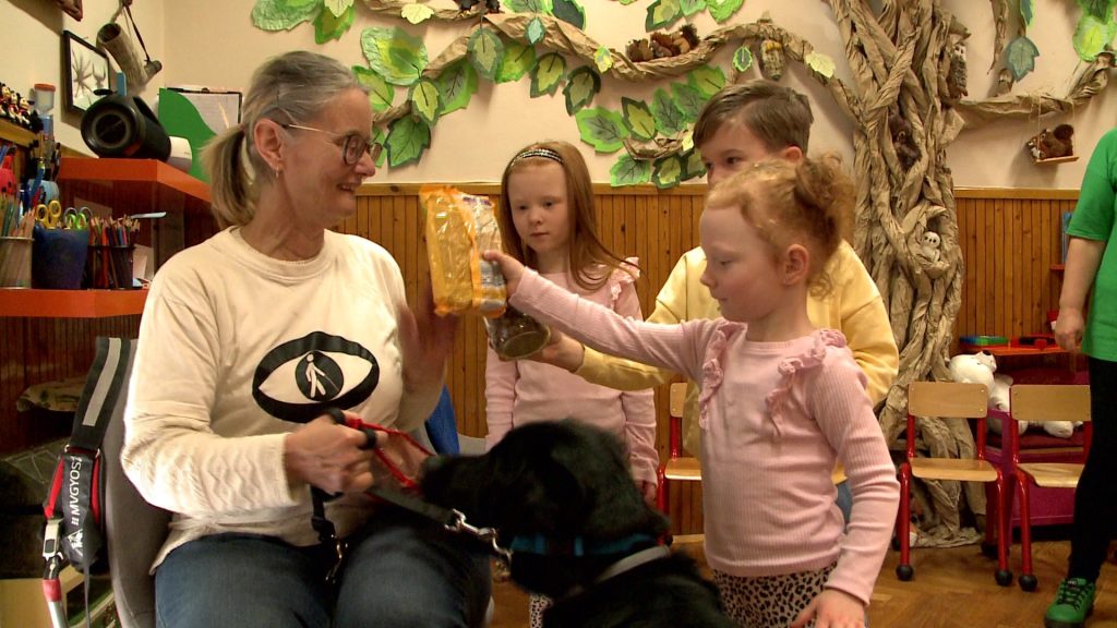 A felelős állattartás 10 alapvető szabályával ismerkedhettek meg a gyerekek a tornateremben egy kisfilm segítségével – az ismeretterjesztő videó egyben érzékenyítette is a kicsiket – nem véletlenül. A mai napon ugyanis egy olyan ember érkezett a Katona József Úti Tagóvodába, aki látássérült, és vakvezető kutya segítségével éli mindennapjait.