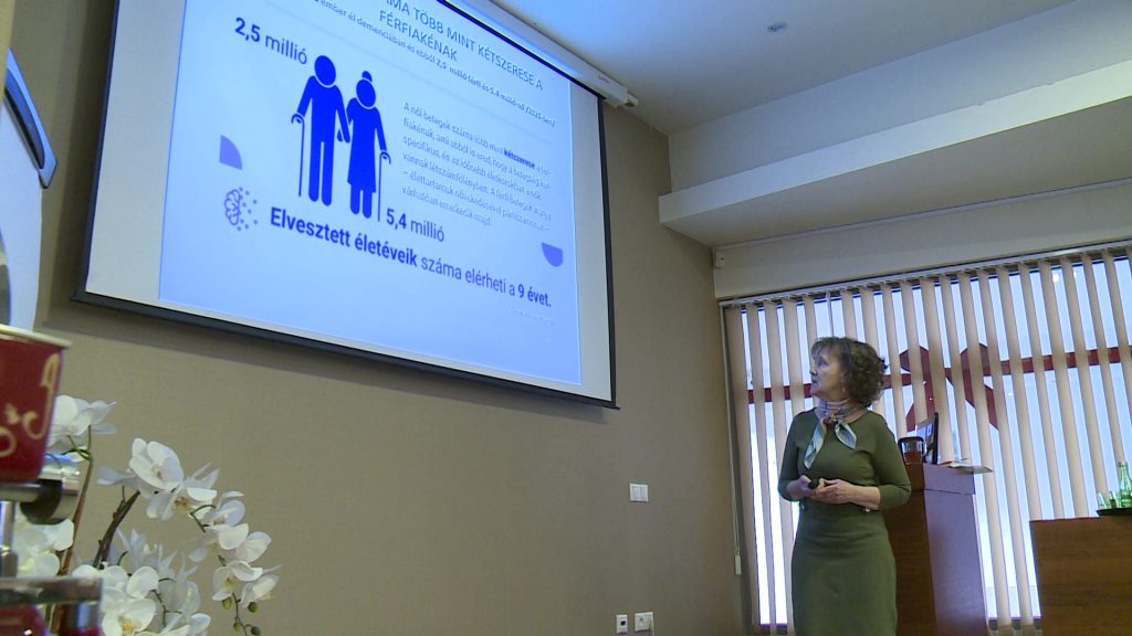 Az előadásból kiderült, hogy a női betegek száma kétszerese a férfiakénál, mivel időskorban a hölgyek vannak létszámelőnyben. Az Európai Unióban jelenleg közel 8 millió demenciával küzdő ember él, számuk 2050-re elérheti a 14 milliót.